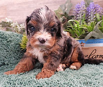Dolly is a beautiful tri blue merle Cavalier. She is AKC registered. She is a little firecracker who loves attention and to run and play. She has very colorful cavapoo puppies. Dolly weighs about 13-14 pounds.