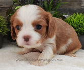Kate is a small frame blenheim Cavalier. She is a new addition to the kennel. She loves attention. She is calm and loves all the other dogs. She weighs about 11 pounds. She is genetically clear!
