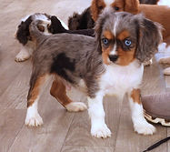 Lola is a beautiful dark blue Cavalier. She is a just getting used to the kennel. She weighs around 12-13 pounds. She had a litter of Cavalier puppies on 8/17/2025 with Tyson (from another kennel). Puppies will be 8 weeks old on 10/12/2025. These puppies should be under 14-15 pounds fully grown. Will be wormed and have vaccinations. Kennel will perform early Early Neurological Stimulation (ENS) starting at 5 days old. ENS for puppies is a set of gentle, controlled exercises done with puppies from days 3 to 16 of their lives. These exercises stimulate their neurological system and are believed to help with development, resilience, and coping mechanisms. They also improve the puppies' cardiovascular performance, stronger heart beats, stronger adrenal glands, more tolerance to stress, and greater disease resistance. Kennel offers a complimentary microchip. These puppies will not be registered as AKC does not recognize merle colors.