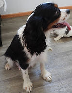 Autumn is a new addition to the kennel. She is a black/tri cavalier. She is just getting used to everyone and the new environment. She has a lush thick coat. Autumn weighs about 14-15 pounds.